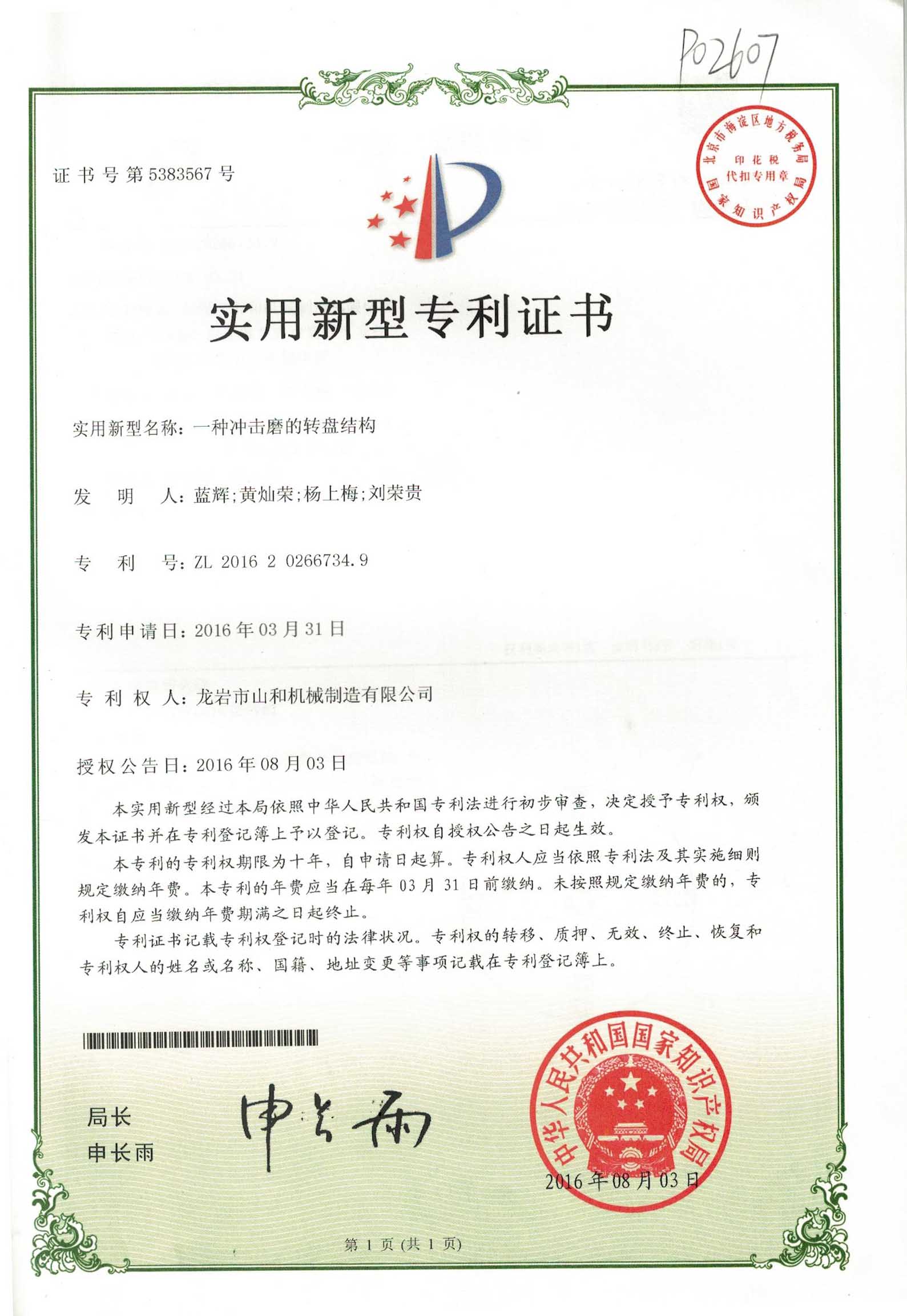 一種(zhong)沖擊磨的(de)轉盤結構(gou)